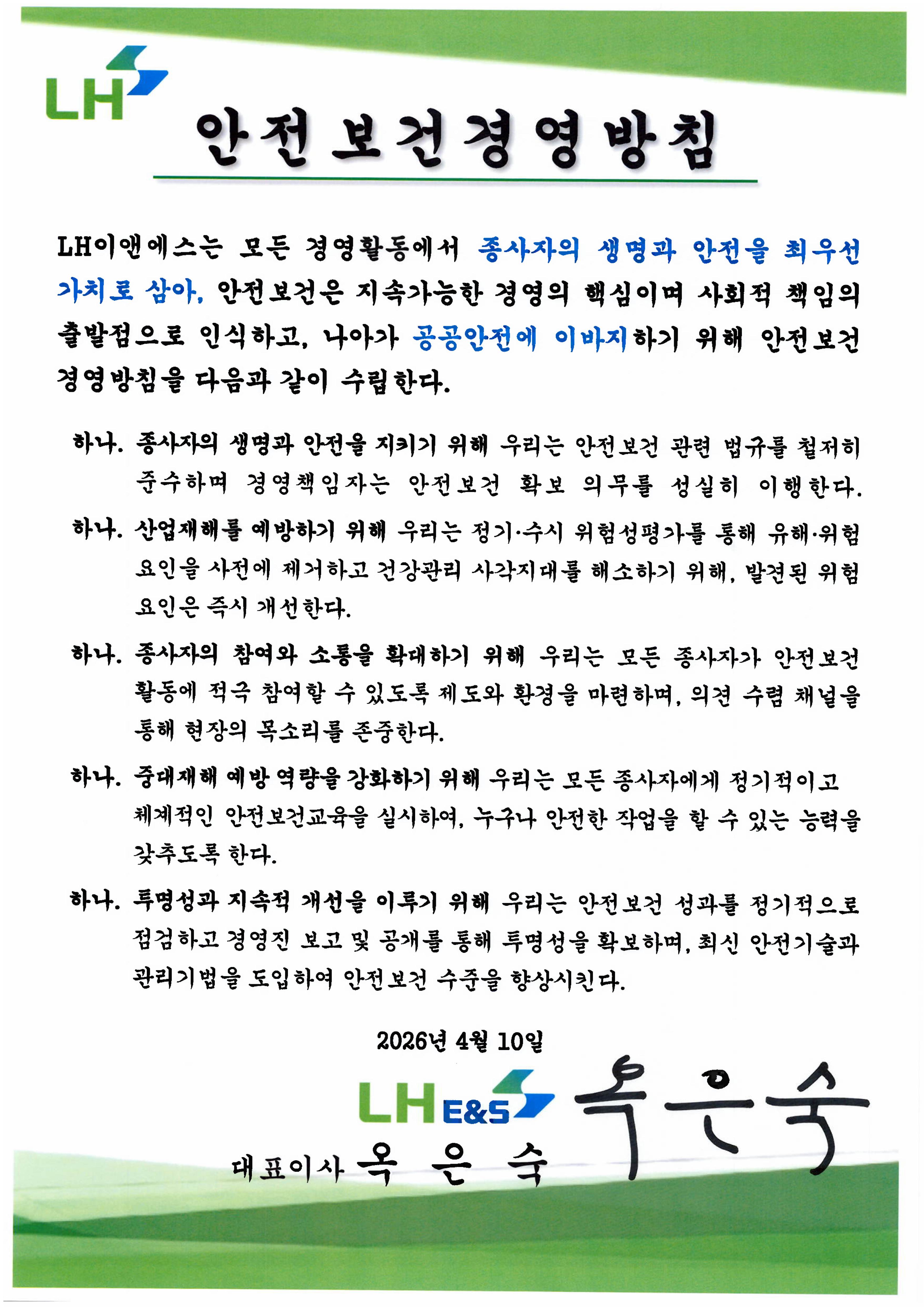 - 안전보건경영방침