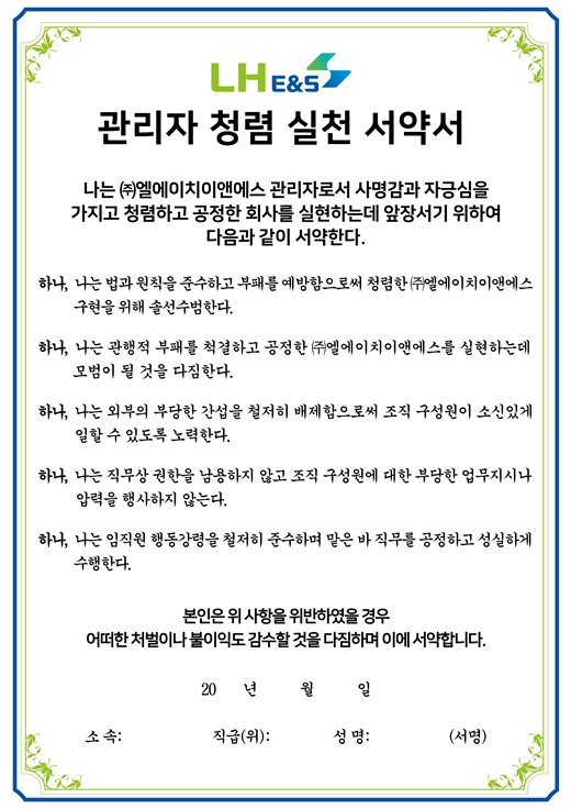 LH E&S는 부패방지와 깨끗한 공직풍토 조성을 위하여